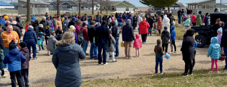 Families braved the weather as children spread out across the fields in search of brightly colored eggs, continuing a long-standing community tradition.