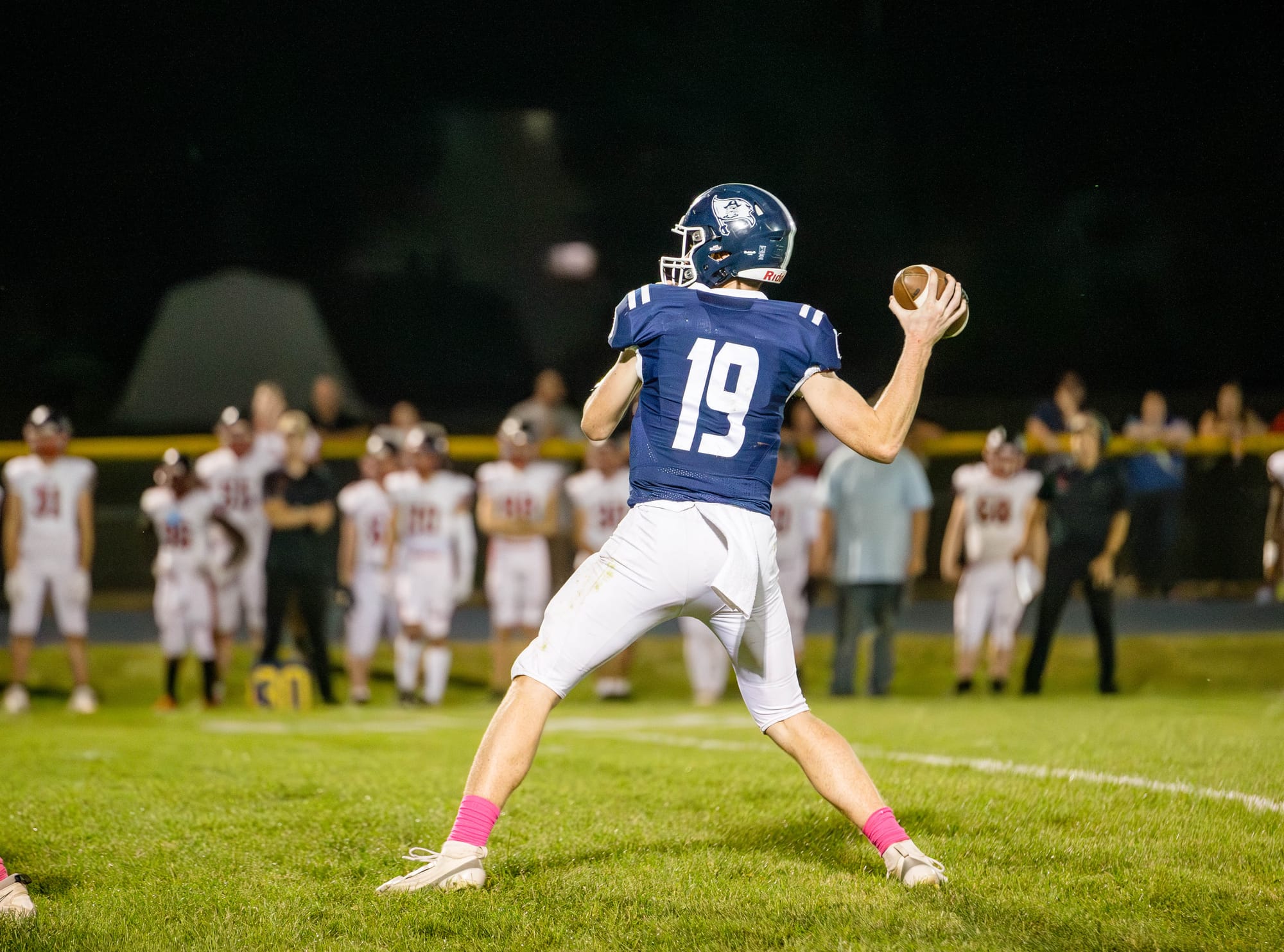 The Hudson boys won the toss and took the football, putting their offense on the field first. It proved to be a good decision as they put together a scoring drive on the opening possession, culminated by a 10-yard scoring strike from Tade Roberts to Owen Bell.